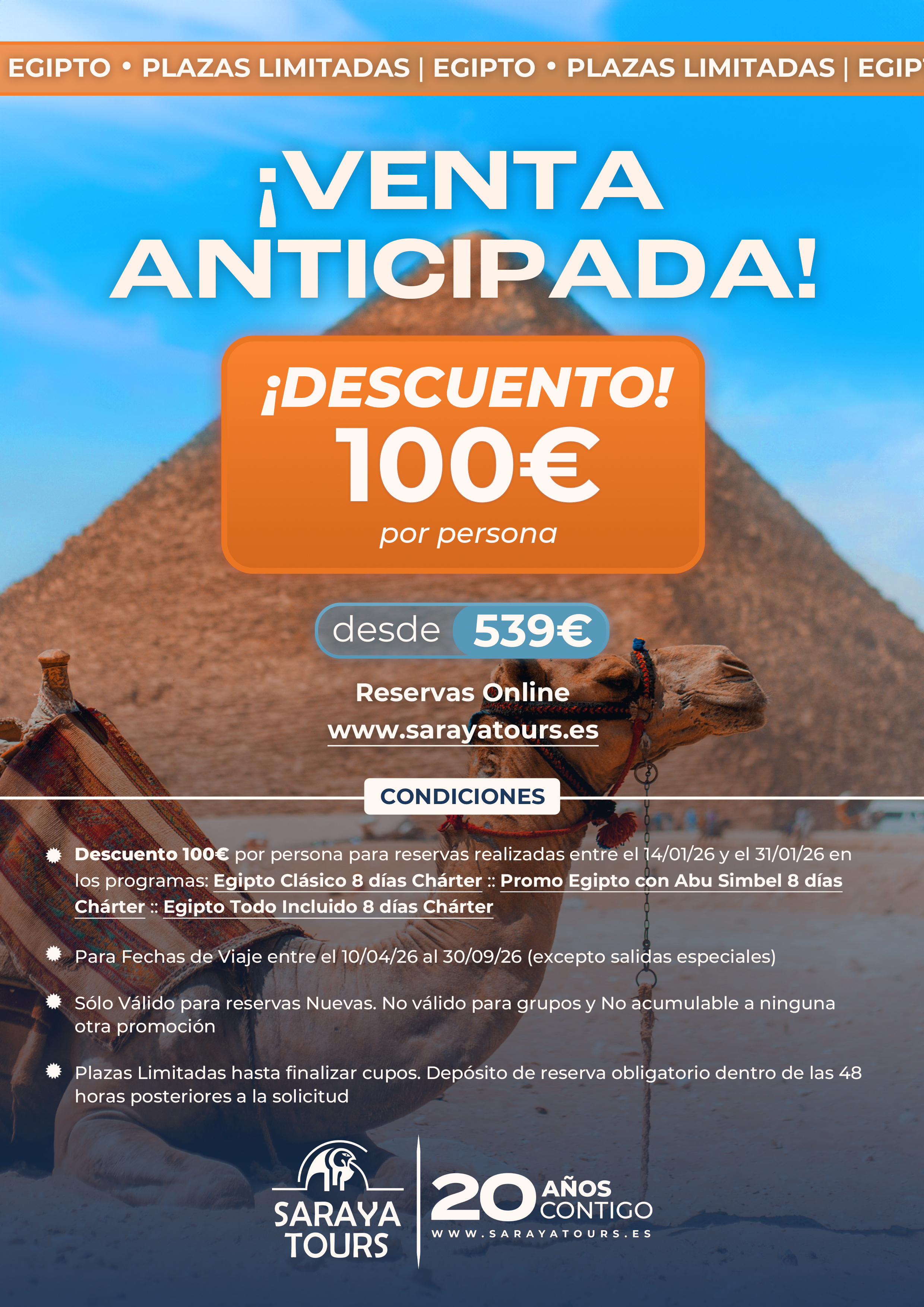 ¡¡Venta Anticipada con 100€ de Descuento!! Entra y Reserva Ya salidas 10/04/26 al 30/09/26. Plazas limitadas.