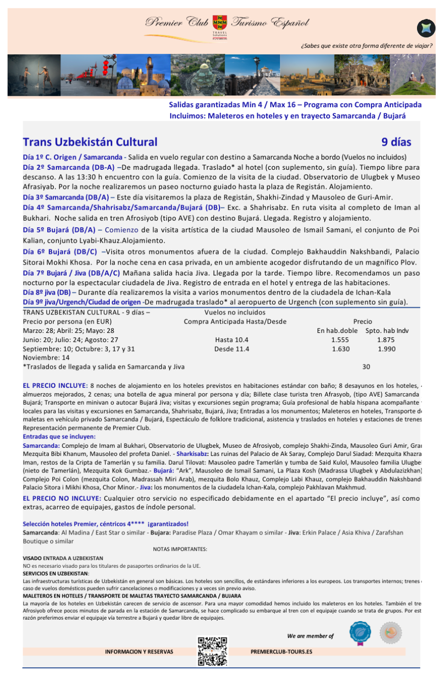 Trans Uzbekistán Cultural 9 días - Maleteros incluidos -Un gran viaje al precio justo!! Precio desde 1.555€